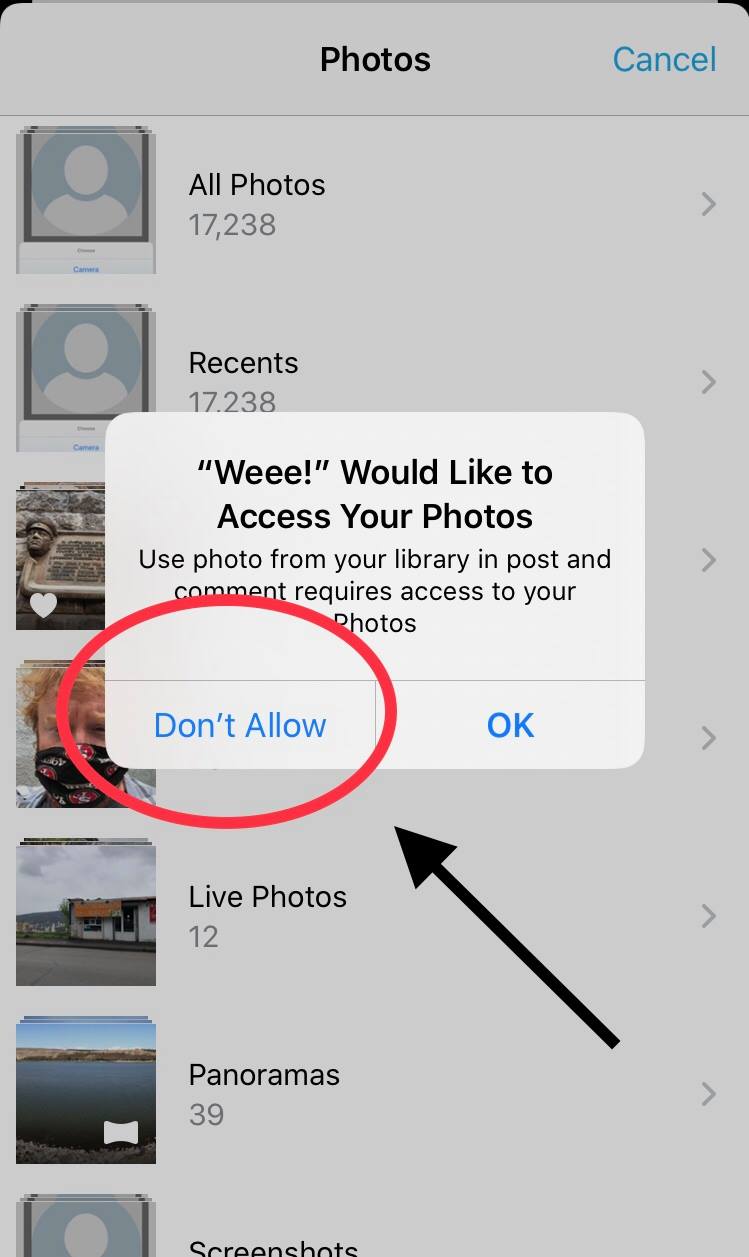 Expected: The Weee! - Asian Grocery app should respect a user who selects "Don't Allow" from a camera roll permission prompt